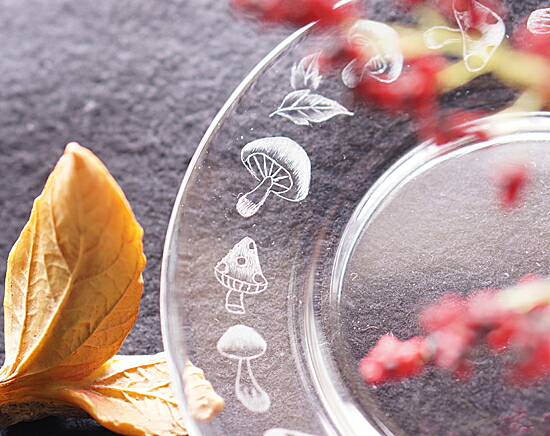 ガラスに線彫りや点刻彫りで表現するグラスリッツェン。